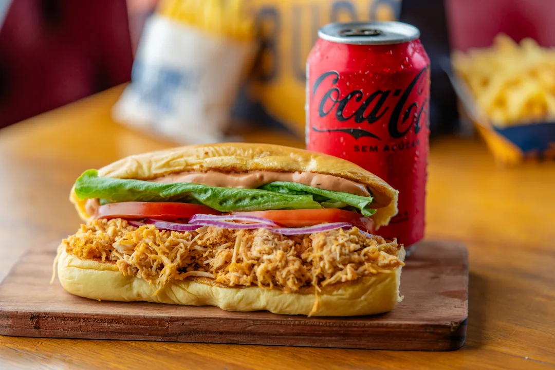 2 Hamburgueres Bacon Shower. Bacon Shower: Carne artesanal de 100g, queijo cheddar, 5 maravilhosas fatias de bacon e molho. O molho é o mesmo para ambos o combo. A clássica batata da Brayan na porção de 250g.